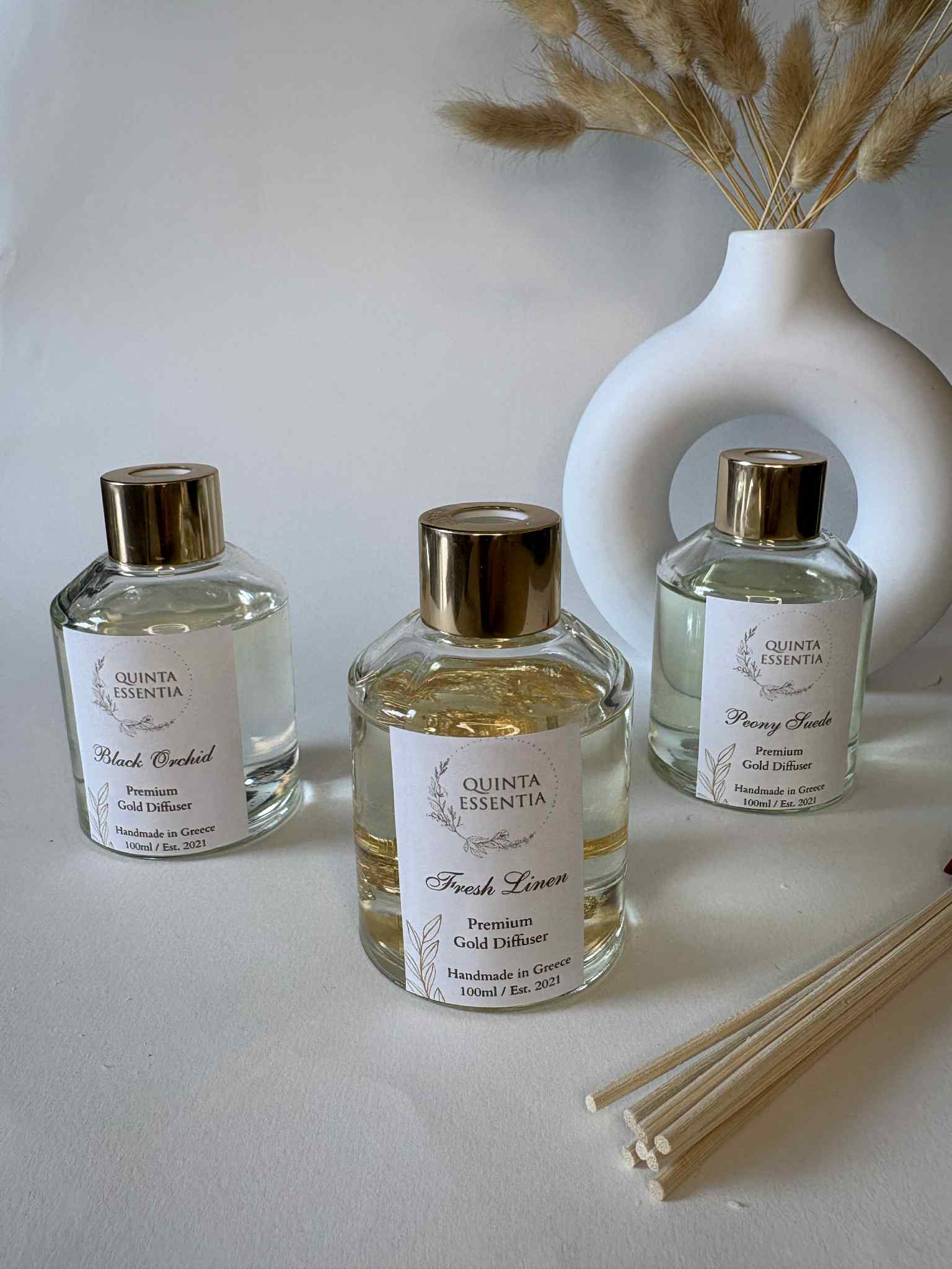 Χειροποίητο αρωματικό χώρου με φύλλα χρυσού και rattan sticks 100ml!